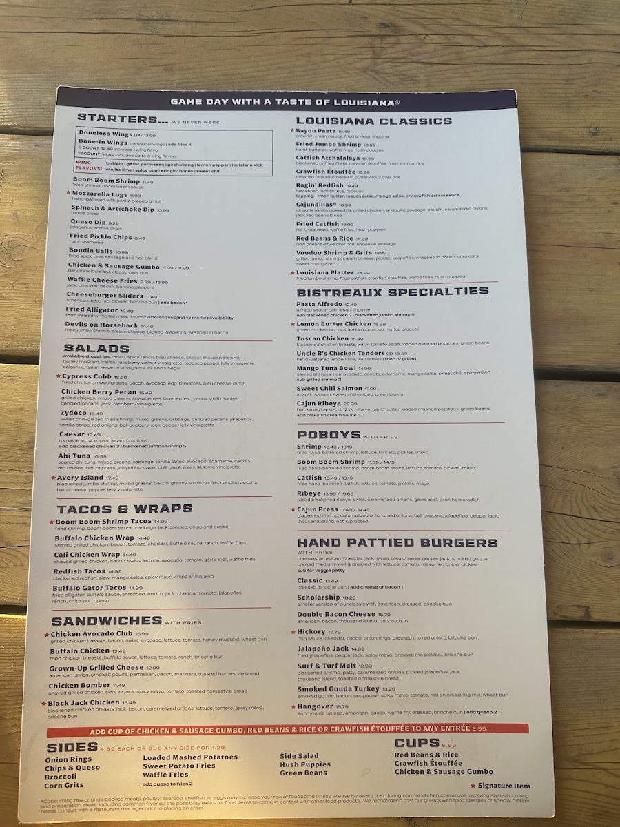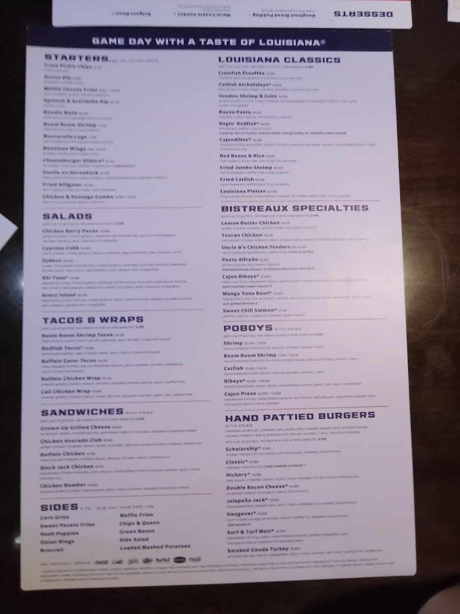 hand-battered jumbo shrimp and catfish served with crawfish étouffée, seasoned waffle fries, and hush puppies